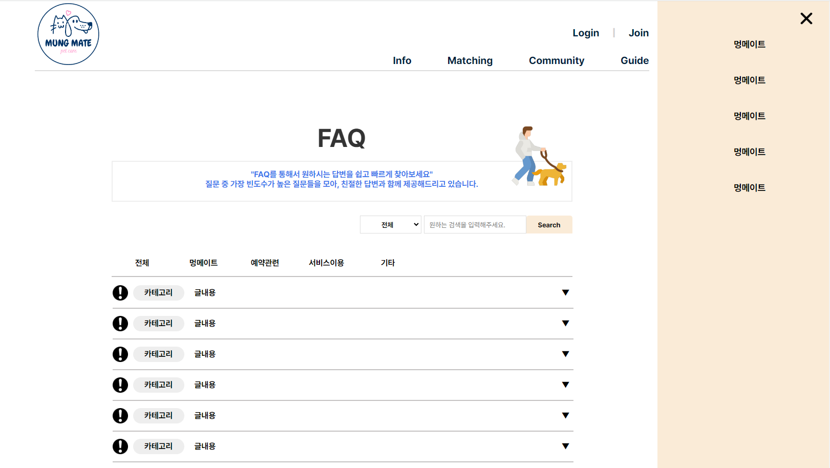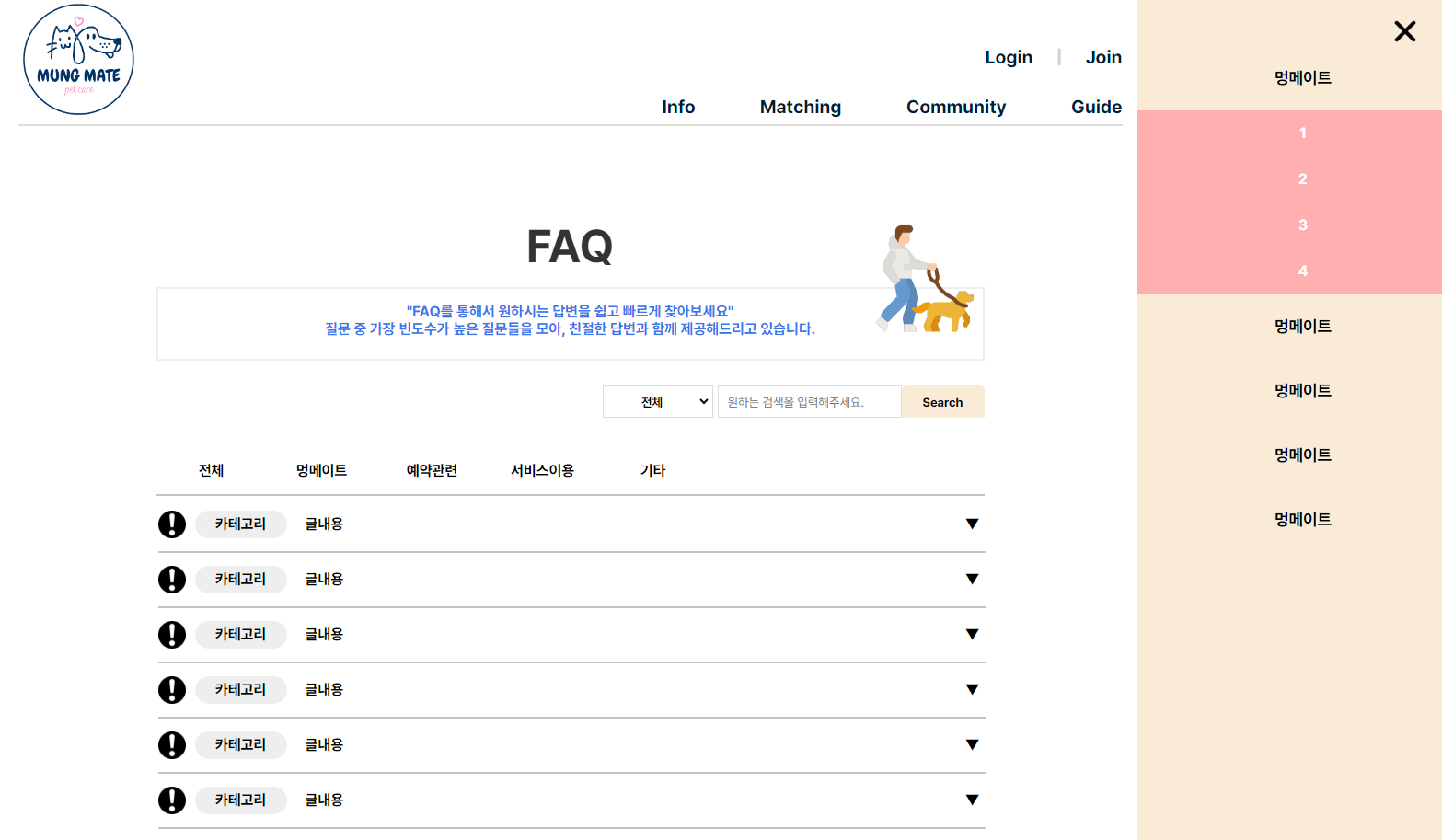 - 사이브메뉴 버튼을 누르면 숨겨져있던 사이드메뉴영역이 나타나고 사이드메뉴버튼이 x 모양으로 변한
