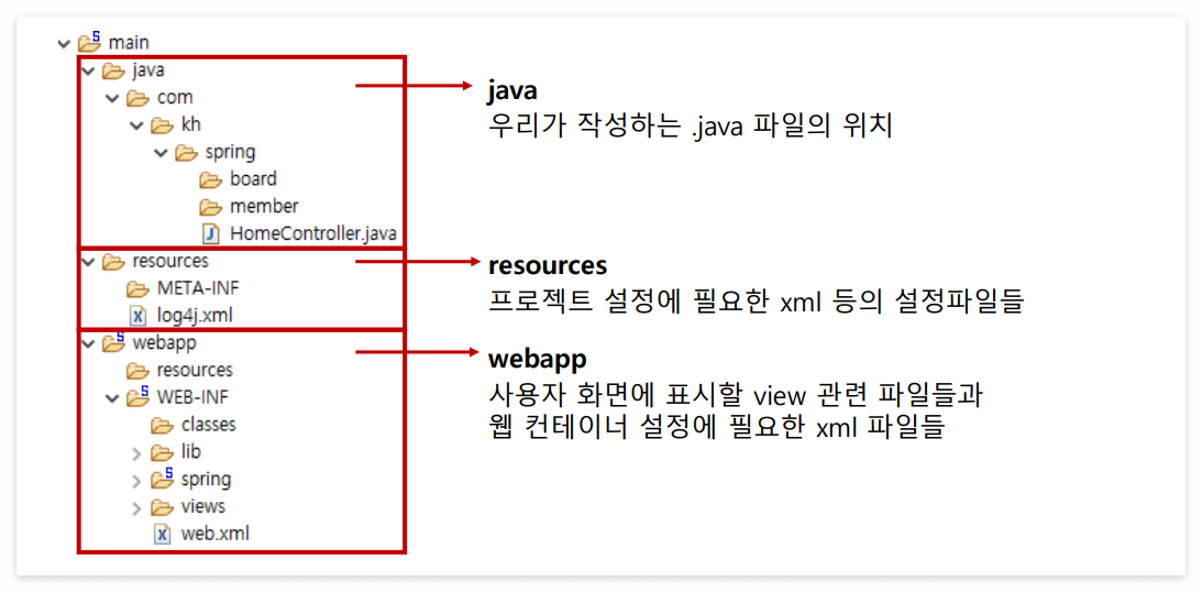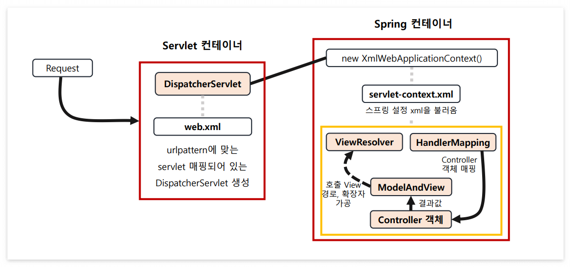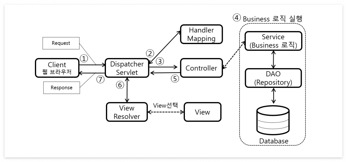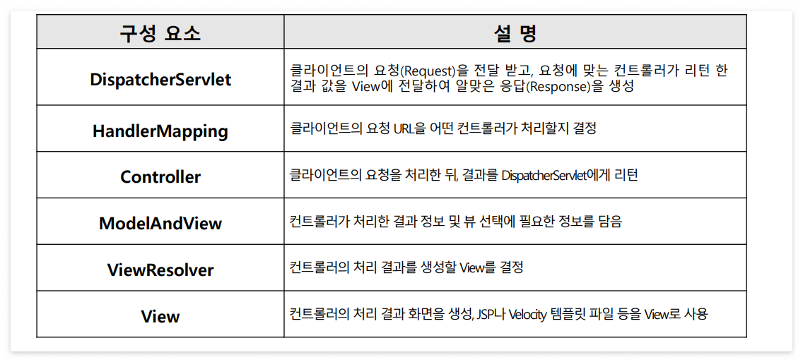 - Spring Framework 에서는 클라이언트의 화면을 표현하기 위한 View와 서비스를 수행하기 위한 개발 로 직 부분을 나누는 MVC2 패턴을 지원한다. 또한 Model, View, Controller 사이의 의존 관계를 DI 컨테이너에서 관리하여 유연한 웹 애플리케이션을 쉽게 구현 및 개발할 수 있다.