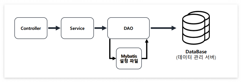 - 이전에 JDBC Template을 통해 SQL을 실행하였다면 Mybatis는 해당 흐름을 전용 라이브러리를 통해 대체하여 동작한다고 생각하면 된다.