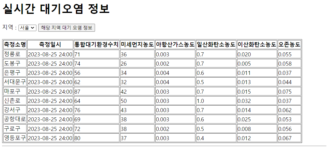 // Json형식으로 대기오염 OpenAPI 활용하기