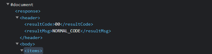 - const itemArr = data.response.body.items : Json형식으로 응답받은 데이터가 있는 경로를 itemArr에 대입