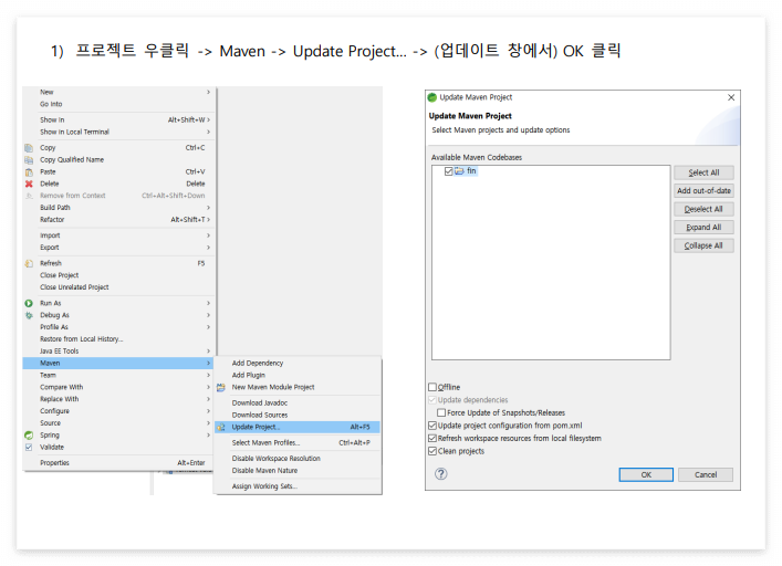 5) pom.xml에 작성된 내용과 이클립스 프로젝트간의 설정 동기화