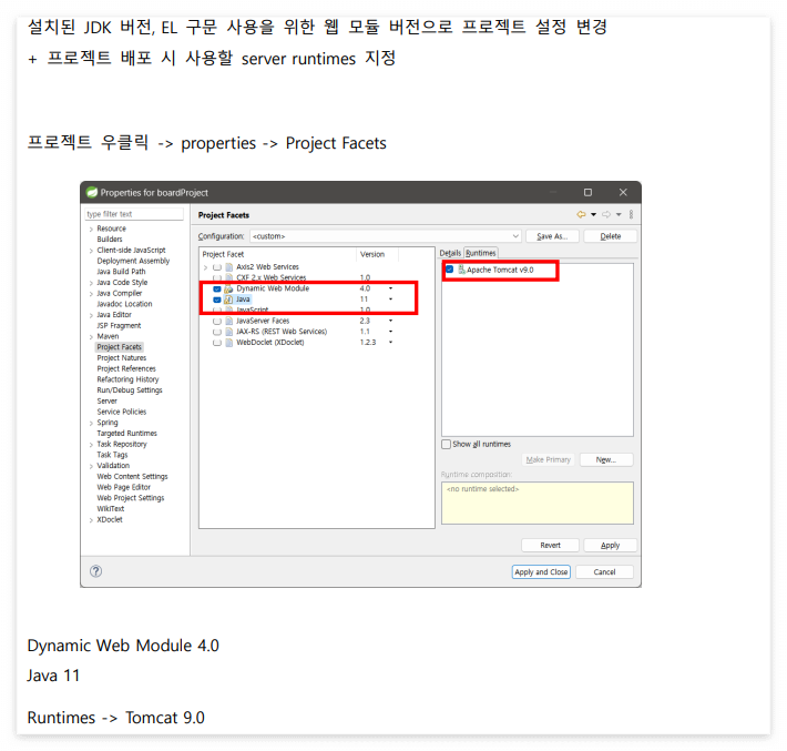 3) Project Facets 변경