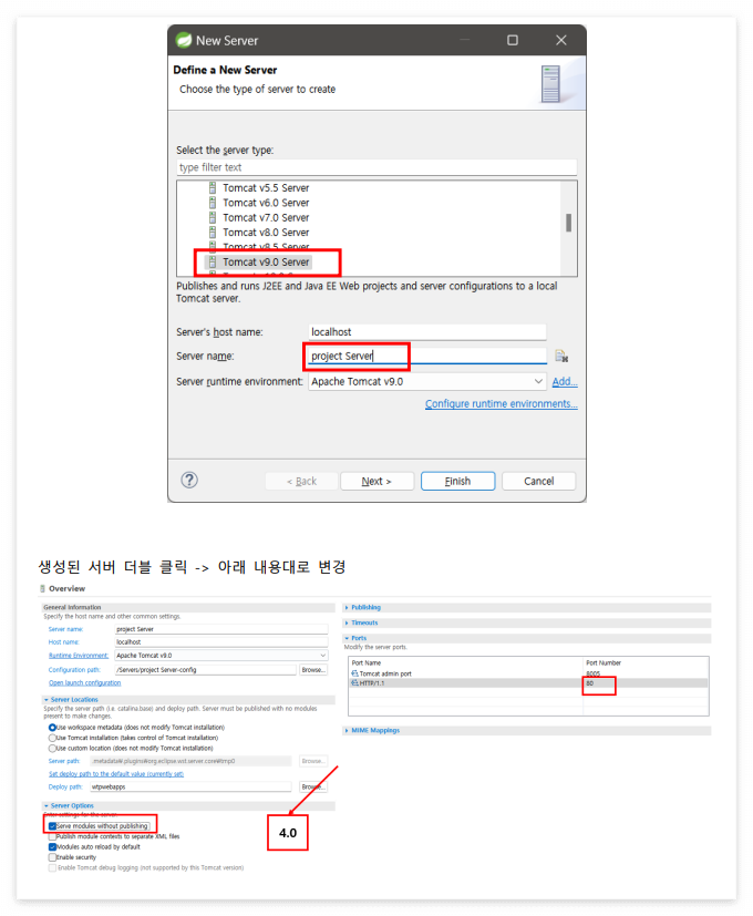 6) Servers 탭에 server 설정 추가